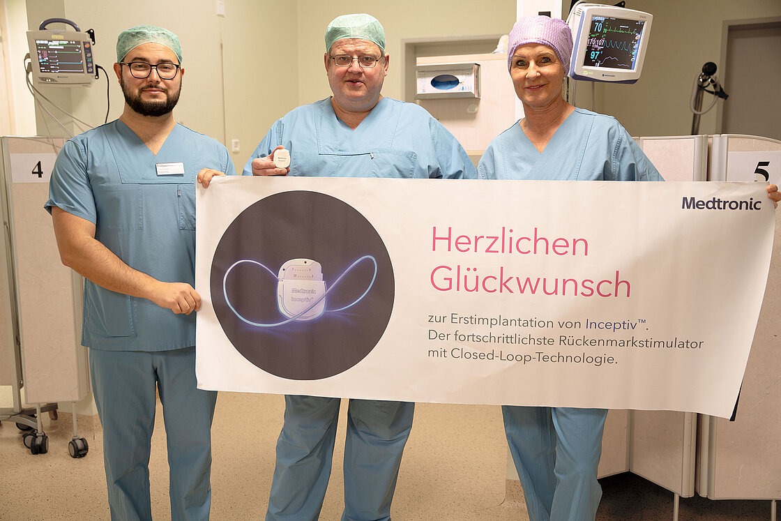 Last week, the Inceptiv Stimulator was implanted in the first patient at the Sportklinik Hellersen. A test electrode was first used to check whether the patient was suitable for this procedure. "The test gave us great hope and very good relief was achieved, so she opted for the implantation," reports Dr. Wolfgang Welke. This was followed a few days later by the "fine-tuning" of the stimulation by the technician. "As the device is new, Medtronic carried out the initial adjustment this time. But we can also do it ourselves. We have trained our own specialists to do this. This makes us and the patients more independent," explains Dr. Wolfgang Welke.
