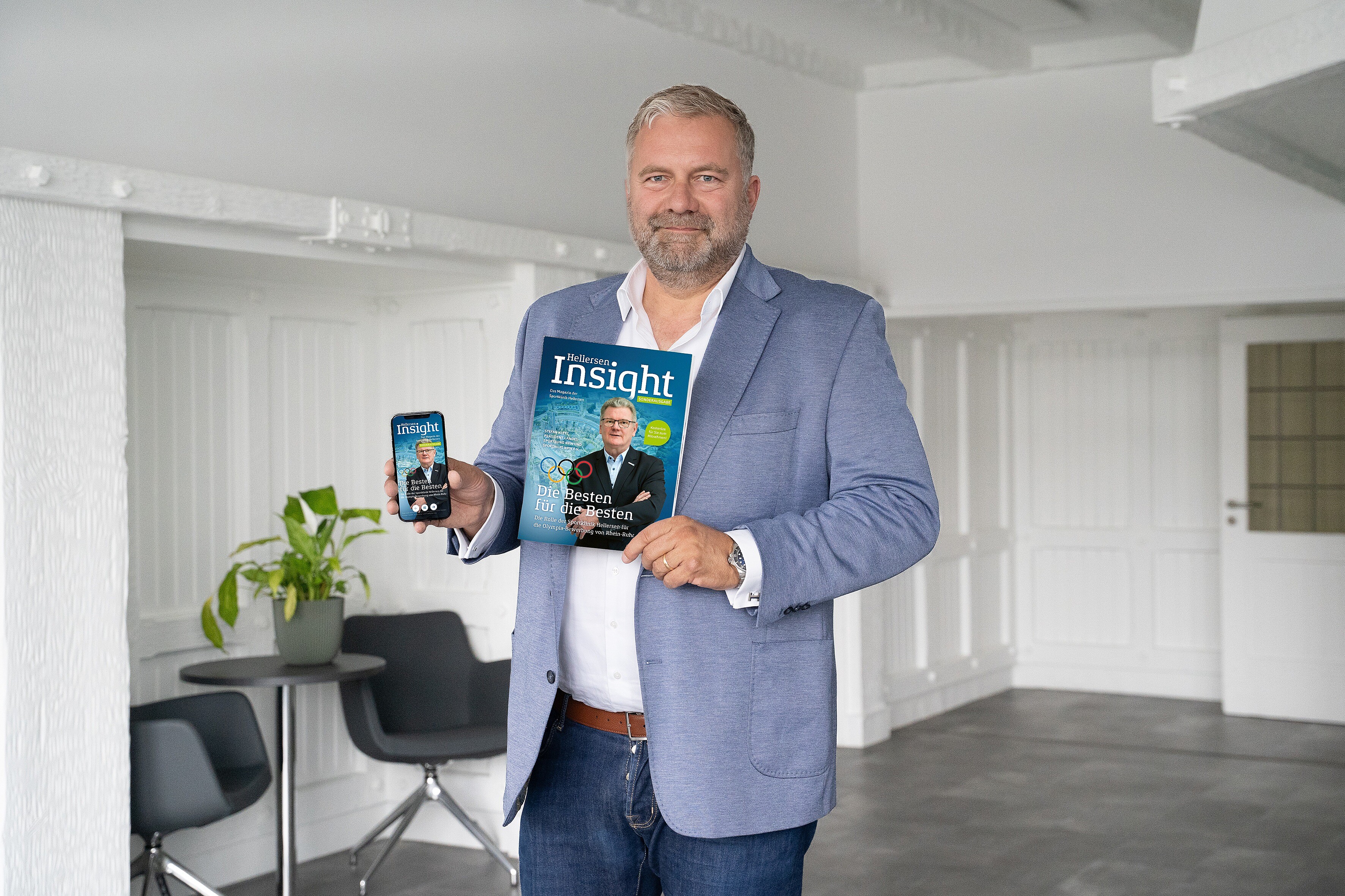Dirk Burghaus, CEO of the Sportklinik Hellersen, with the special Olympic edition of the clinic magazine Hellersen Insight. ©Sportklinik Hellersen