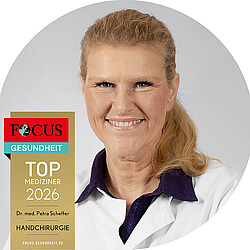 Vor allem in den Morgenstunden fühlen sich Ihre Finger steif an und eine Faust zu bilden, fällt Ihnen schwer. Auch Schwellungen sind an Ihren Fingern nicht unüblich? Die Hände und Finger sind im Alltag permanent im Einsatz. Bereiten Ihnen Schmerzen, zum Beispiel aufgrund einer Arthrose, Probleme, fühlen Sie sich hilflos und sind frustriert. Fast jedes Fingergelenk lässt sich durch ein künstliches Gelenk ersetzen, um die vollständige Funktion der Hand wiederherzustellen und Sie von den Schmerzen zu befreien. Voraussetzung ist, dass die Sehnen und Bänder noch intakt sind. Für Dr. Petra Scheffer, Chefärztin für Handchirurgie, stehen die Bedürfnisse des Patienten an erster Stelle. Sie und ihr Team sind auf die hoch komplexen anatomischen Strukturen auf kleinstem Raum spezialisiert. Gemeinsam mit Ihnen besprechen die Spezialistinnen welche individuellen Vor- und Nachteile eine Fingergelenksprothese für Sie bedeutet.